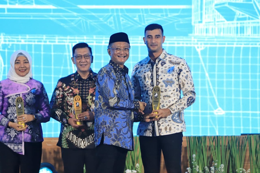 Menteri PU, Dody Hangodo menyerahkan tropi Sutami Award kepada Wakil Bupati Bandun Ali Syakieb, di Auditorium Kementerian PU, Raden Patah, Kebayoran Baru, Jakarta Selatan, Senin (1/12/2025).(Foto: diskominfo)