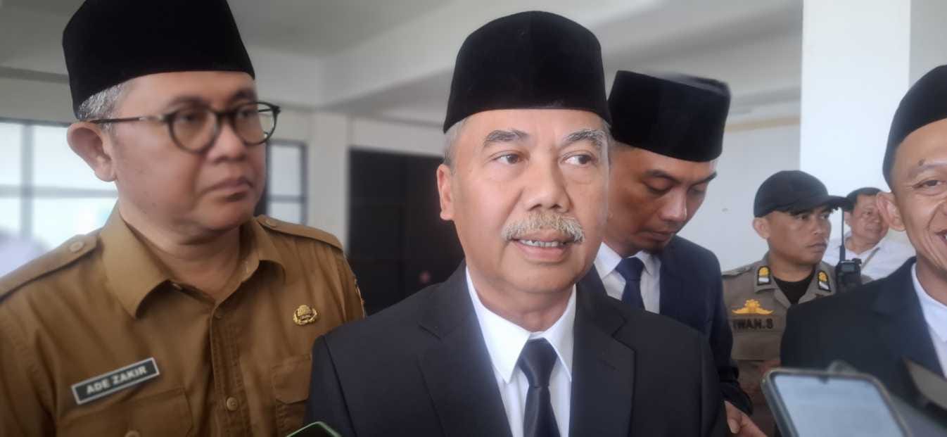 Wakil Bupati Bandung Barat, Asep Ismail memberikan keterangan kepada wartawan usai melantik 122 ASN di Bale Gempungan, Gedung B Komplek Perkantoran KBB-Ngamprah, Senin (6/10/2025).(Foto: heny/dara).